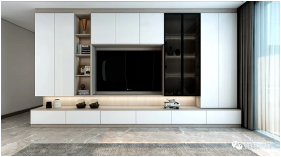 別出心裁的家居設計都以簡單的布局、線條設計為主。簡潔大氣的電視柜搭配質感十足的玻璃柜門,收納與裝飾兩不誤。設計師通過最簡單的設計將空間的質感和高雅的氛圍呈現(xiàn)在整個空間中。